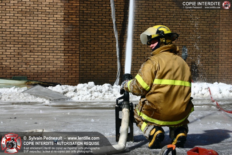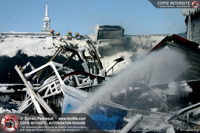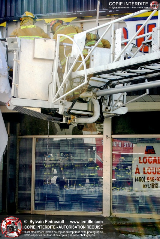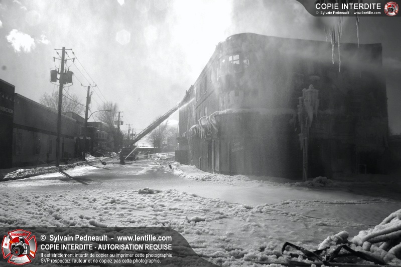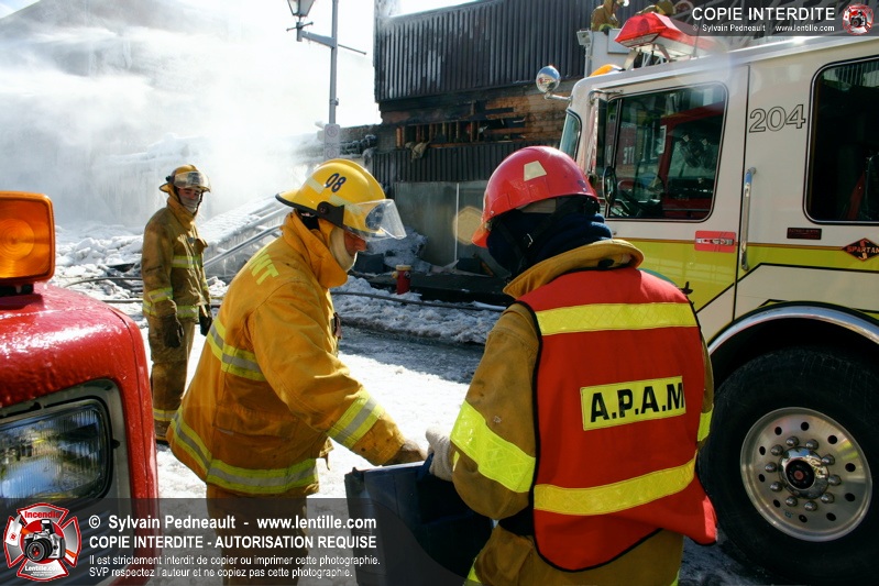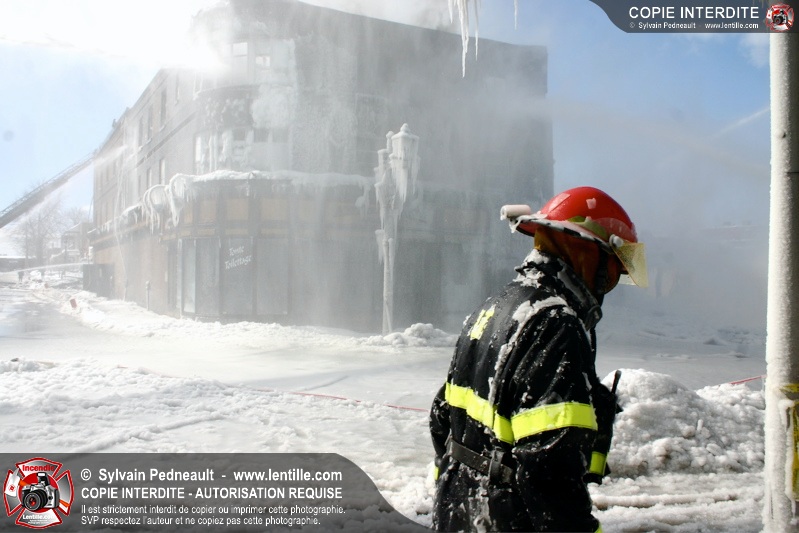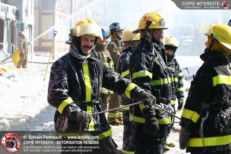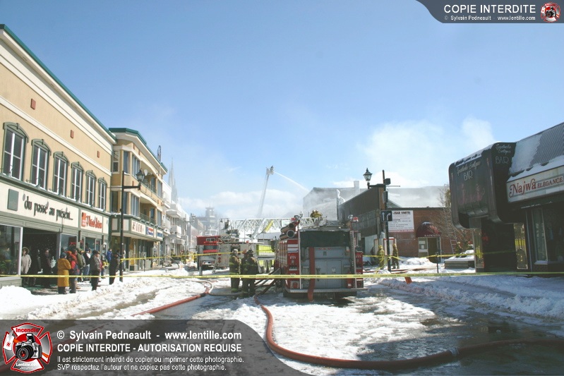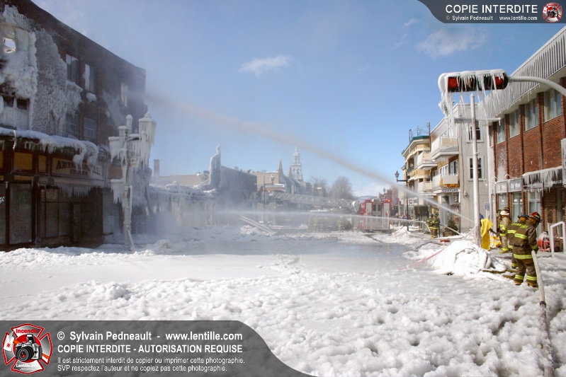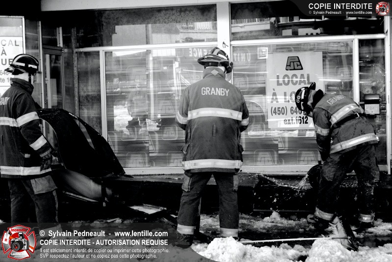 Un incendie particulièrement violent a détruit plusieurs édifices d'un quadrilatère commercial à Granby. L'incendie a nécessité une 4ième alarme et plusieurs demandes d'entraide aux villes environnantes et à l'APAM. Quelques pompiers ont été blessés lorsqu'un mur de briques s'est effondré au secteur 5. -- Note aux pompiers en service sur cette intervention: vous pouvez commander vos photos au prix spécial Saint-Hyacinthe; elles seront livrées à la caserne de Granby à la fin mars