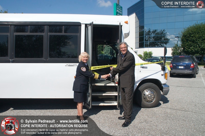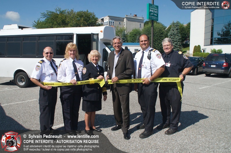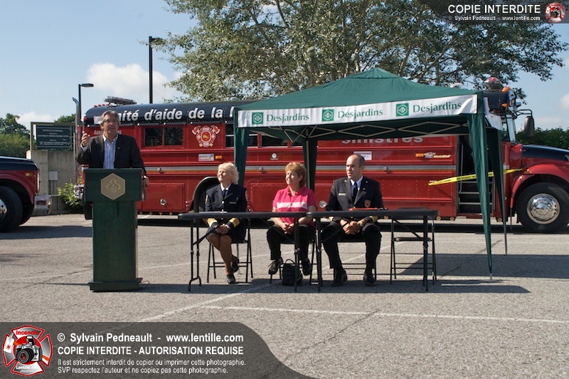 L'Association des Pompiers Auxiliaires de la Montérégie (APAM) a organisé une conférence de presse afin d'annoncer un grand partenariat avec la Fédération des caisses Desjardins, ainsi que pour dévoiler officiellement le nouvel autobus 1302 et présenter le futur minibus qui remplacera le 1201.